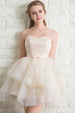 The Sweetheart Tulle Lace Homecoming Dress is the perfect choice for any special occasion. It features a tulle lace fabric and a strapless design that flatter the wearer. while the cute and elegant details make it special for homecoming.