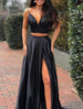 Two Piece Prom Dresses Sexy Dress Formal Wedding Guest Sweep / Brush Train Sleeveless Spaghetti Strap Charmeuse with Bow(s) Slit